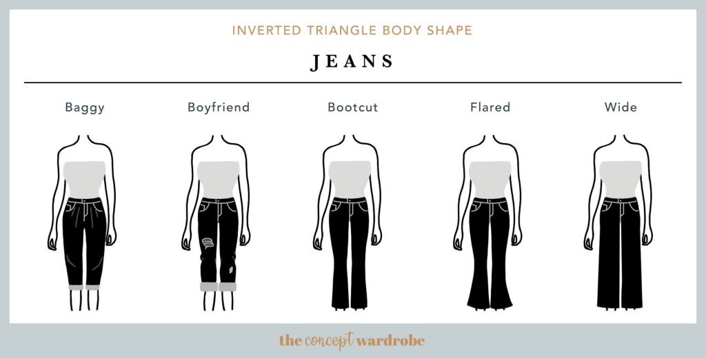 In similar manner to round body shapes, women with an inverted triangle body tend to have little to no waist definition – but they’ve got broader shoulders, which are significantly broader than the hips. Luckily for them, this means that they can pull of quite an array of trousers…